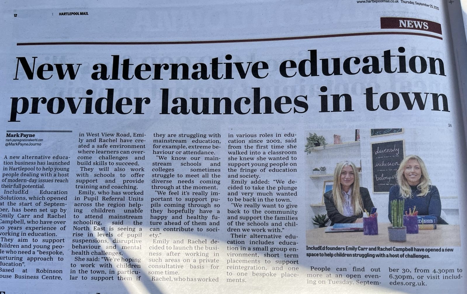 A new alternative education business has launched in Hartlepool to help young people dealing with a host of modern-day issues reach their full potential. Included Education Solutions, which opened at the start of September, has been set up by Emily Carr and Rachel Campbell, who have over 20 years experience...